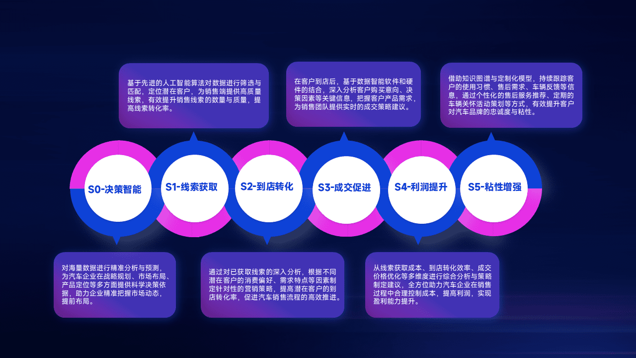 通过拓宽潜在客户来源、、、、优化线索分配并提高到店转化率,,,以增强销售效率。。。。同时,,,,利用线索数据不断优化分析模型,,有效提升转化率,,,,扩大营销影响力。。